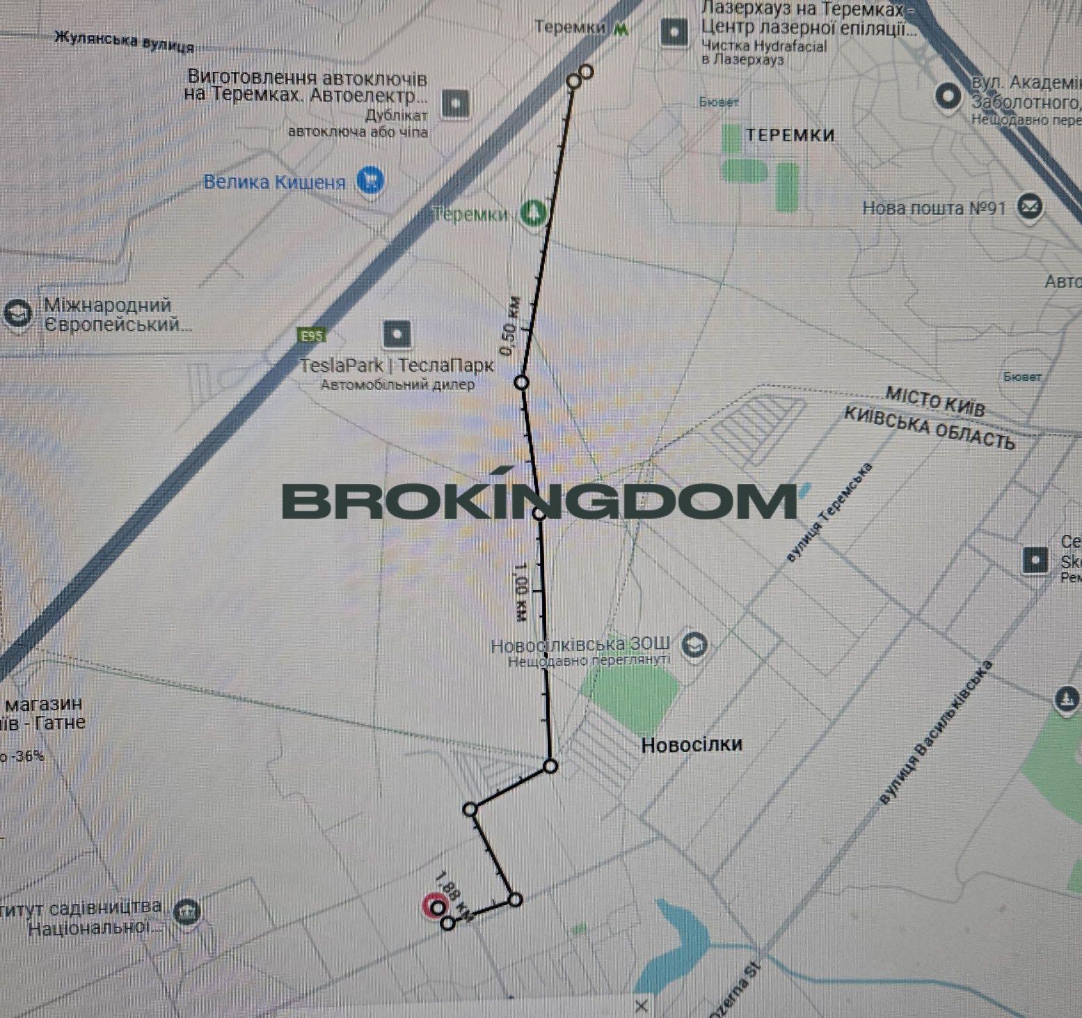 – 5 хв до метро Теремки на авто, 10 на маршрутці, 20 хв до метро пішки, с. Новосілки вул. Озерна 27-А
