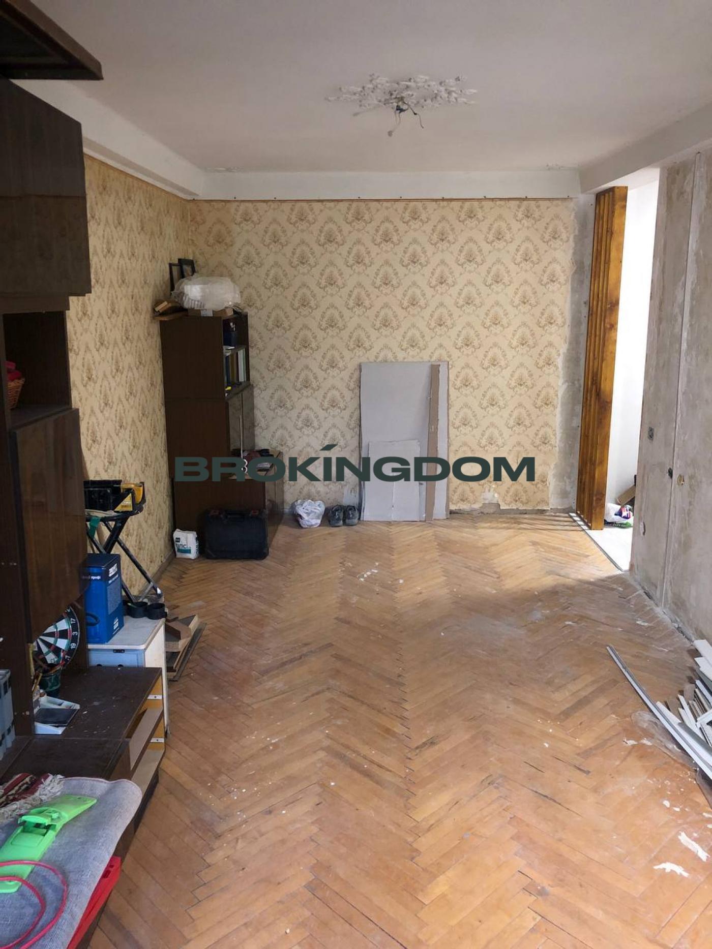 Зроблено частковий ремонт: повністю зроблено ремонт кухні, санвузла, ванної кімнати та коридору, у двох кімнатах та балкону ремонту наразі немає ( на фото показана лише одна ( більша ) кімната, у меншій кімнаті наразі проводиться ремонт, там зараз вирівняні стіни під поклейку шпалер, та проводиться стяжка підлоги ).