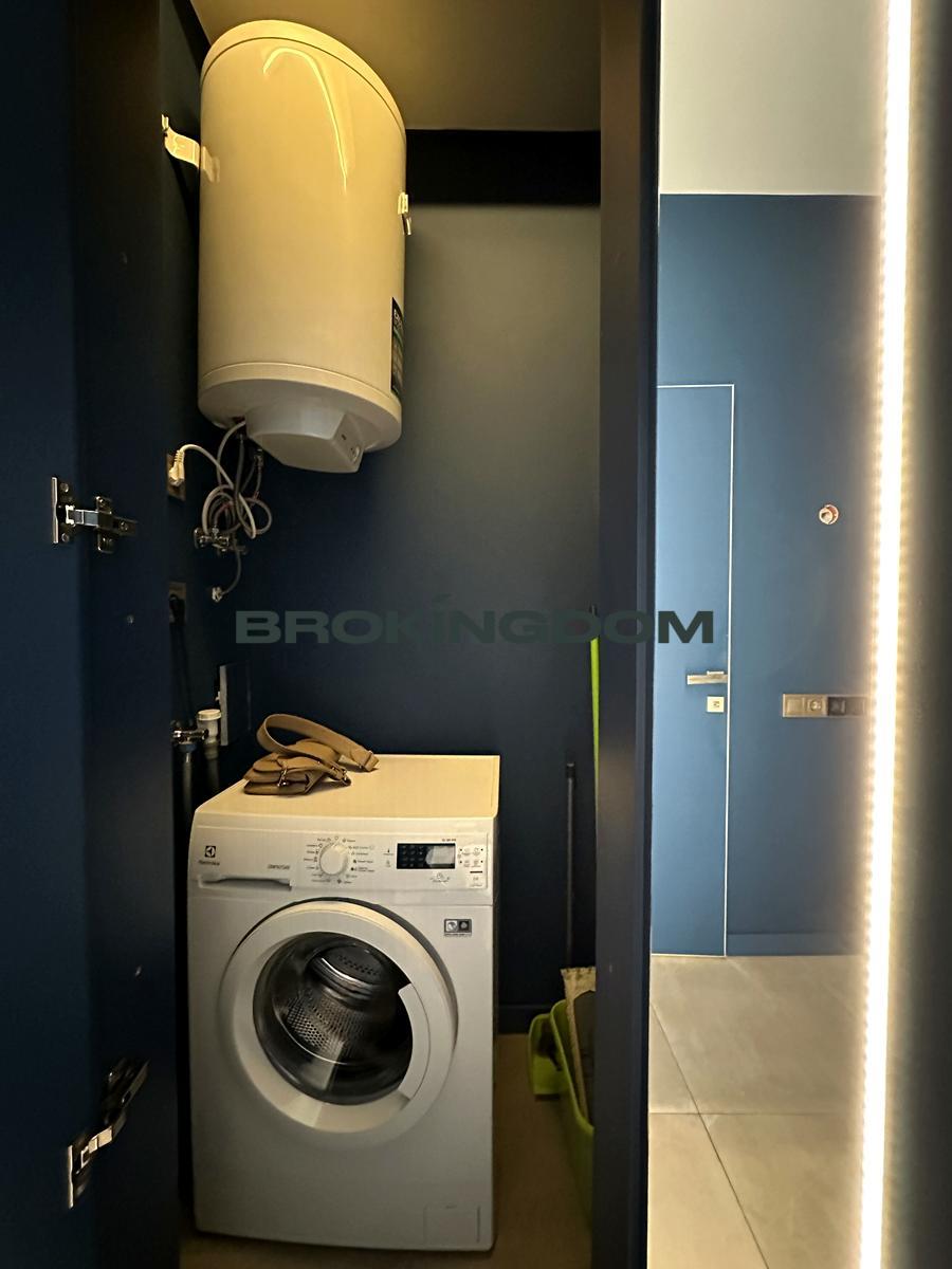 Класна ванна кімната, багато місць для зберігання речей. Є велика шафа у зоні спальні, гардероб при вході в квартиру та кладова з пралкою.