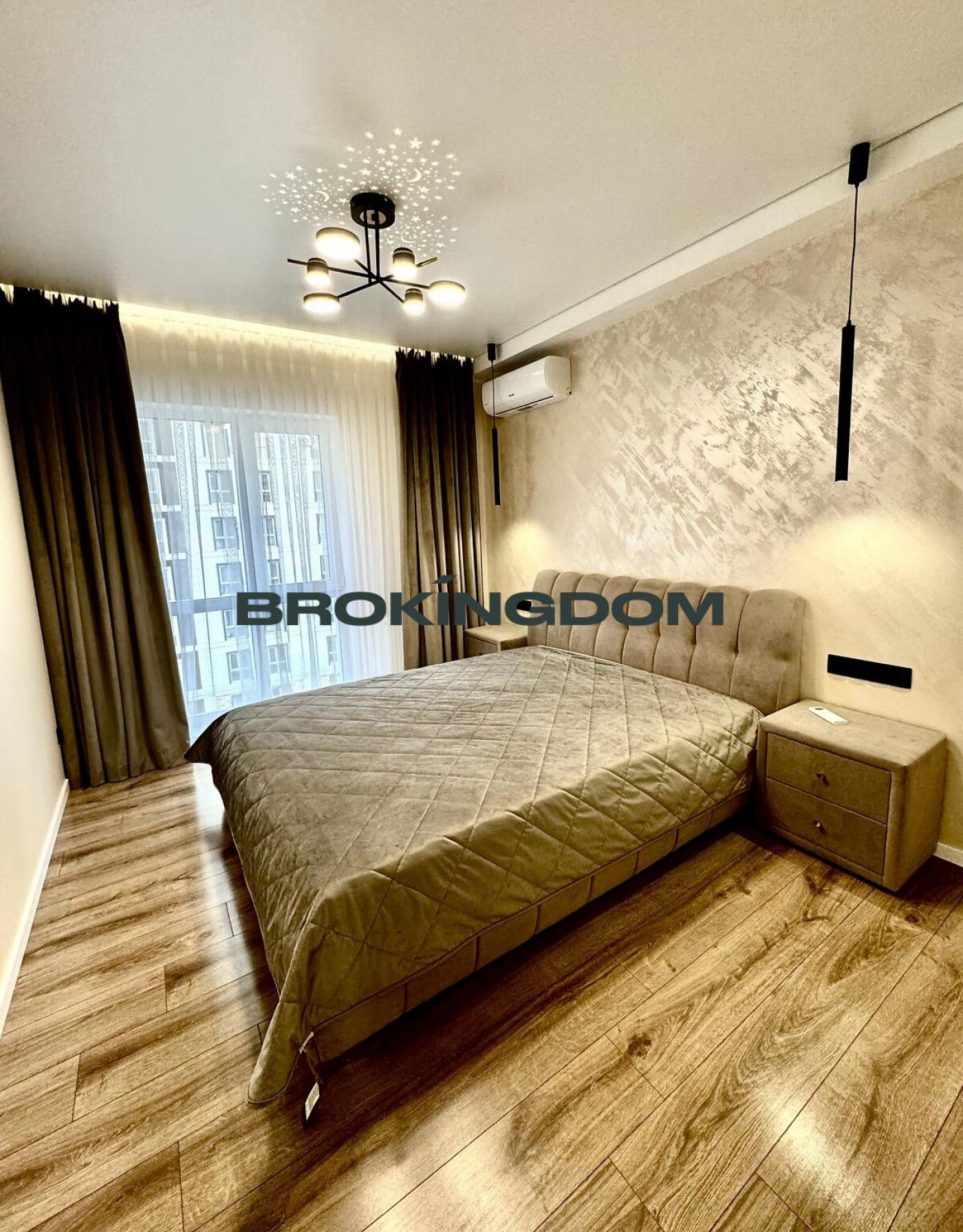Спальна кімната має велике ліжко з під’емним механізмом для зберігання речей, зручними тумбами, величезною шафою та зручно встановленим кондиціонером.