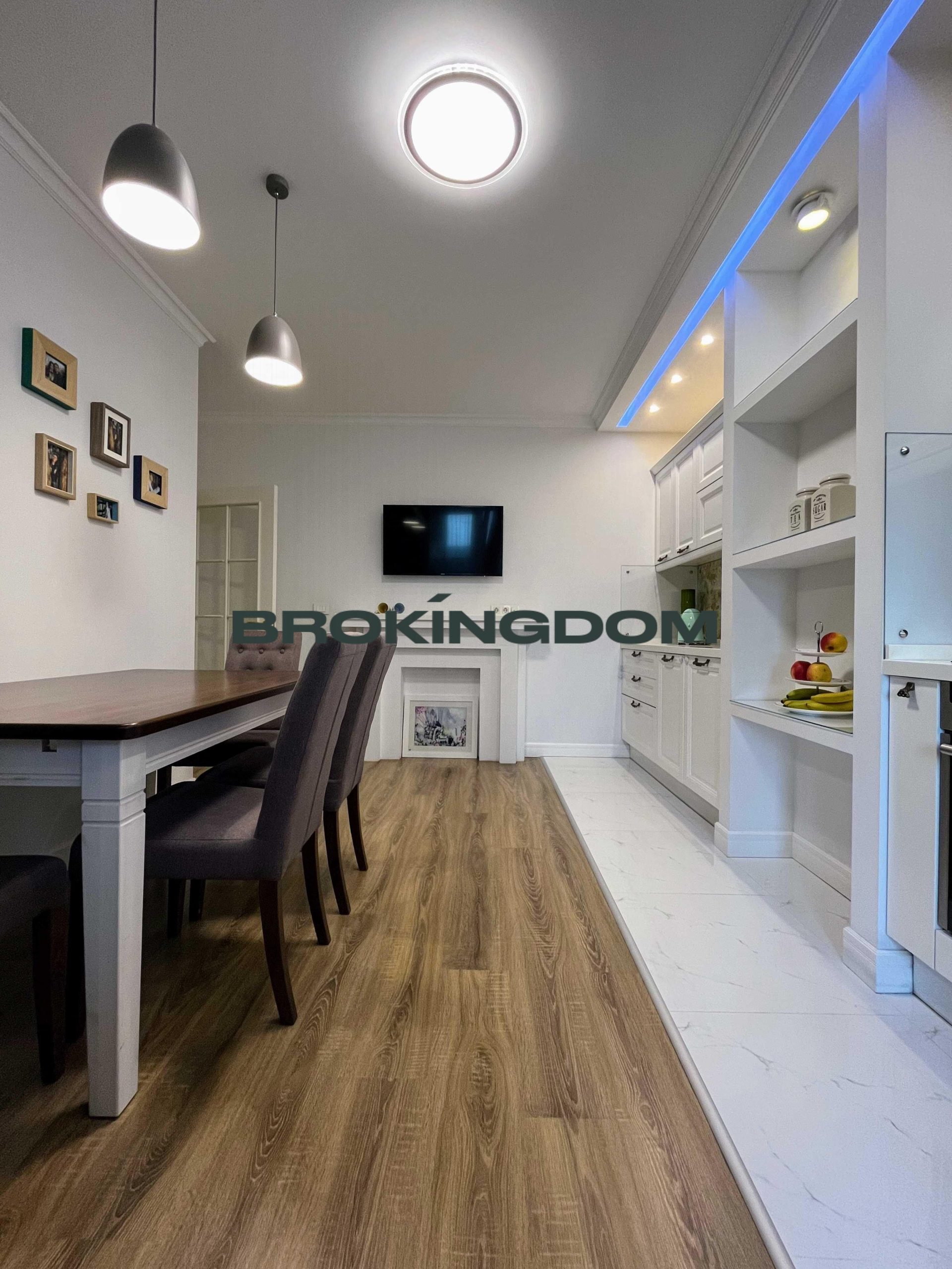 Простора квартира з сучасним дизайнерським ремонтом, виконаним із використанням преміальних матеріалів.