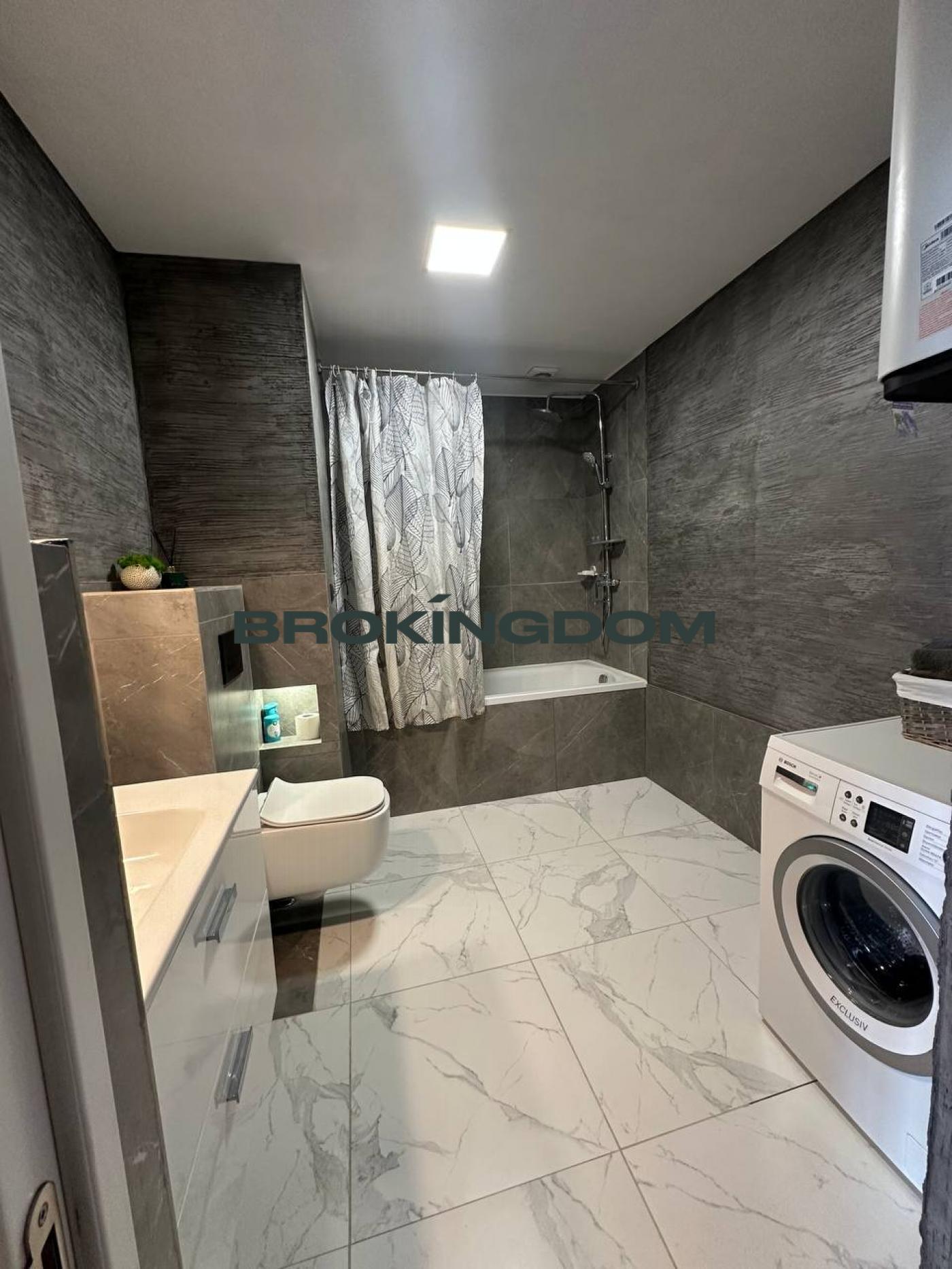 – просторий санвузол з ванною та душовою системою, умивальником, дзеркалом, пральною машиною LG, бойлером Ariston, гігієнічним душем.