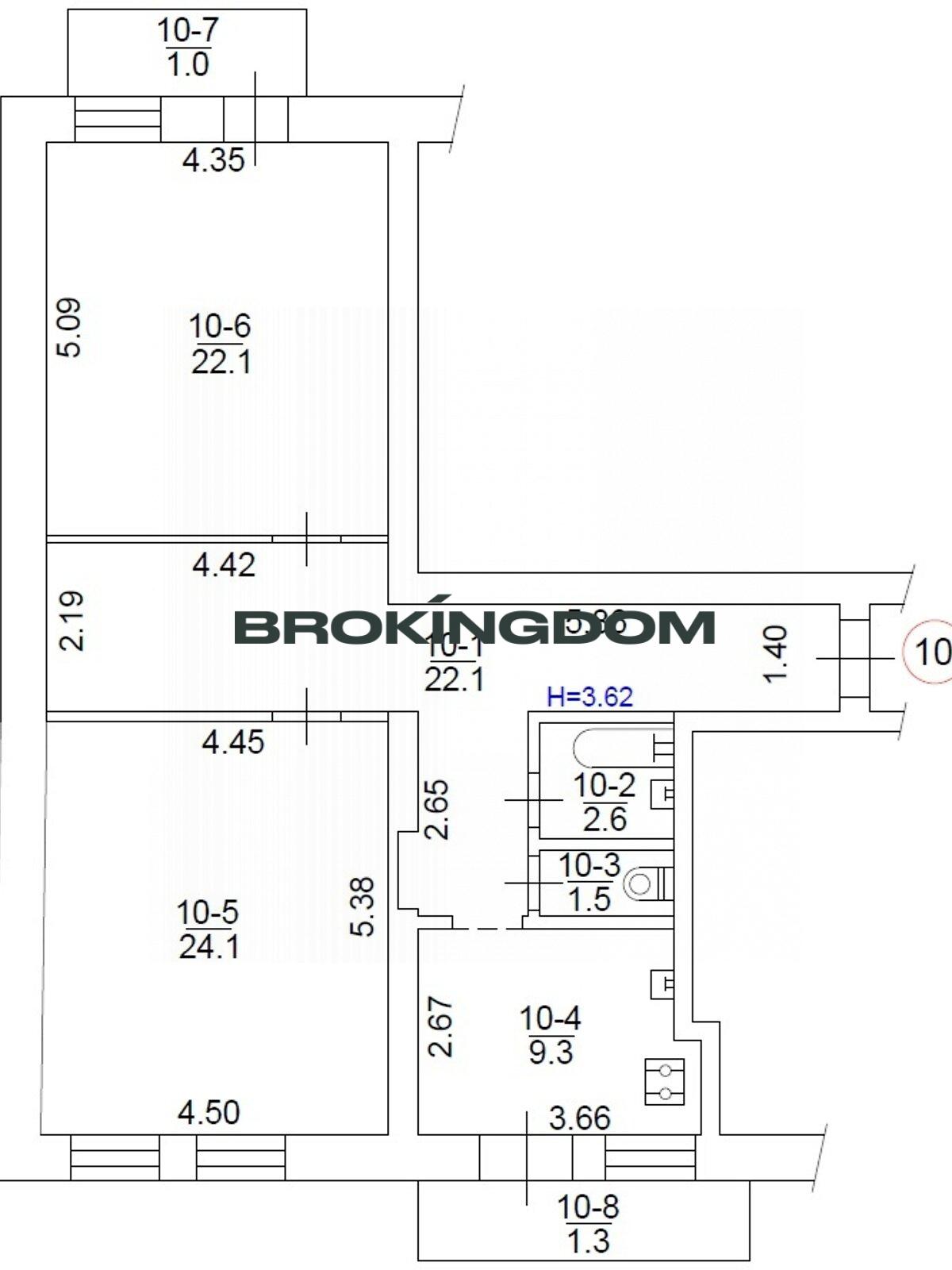 – Висота стелі: 3, 62 м