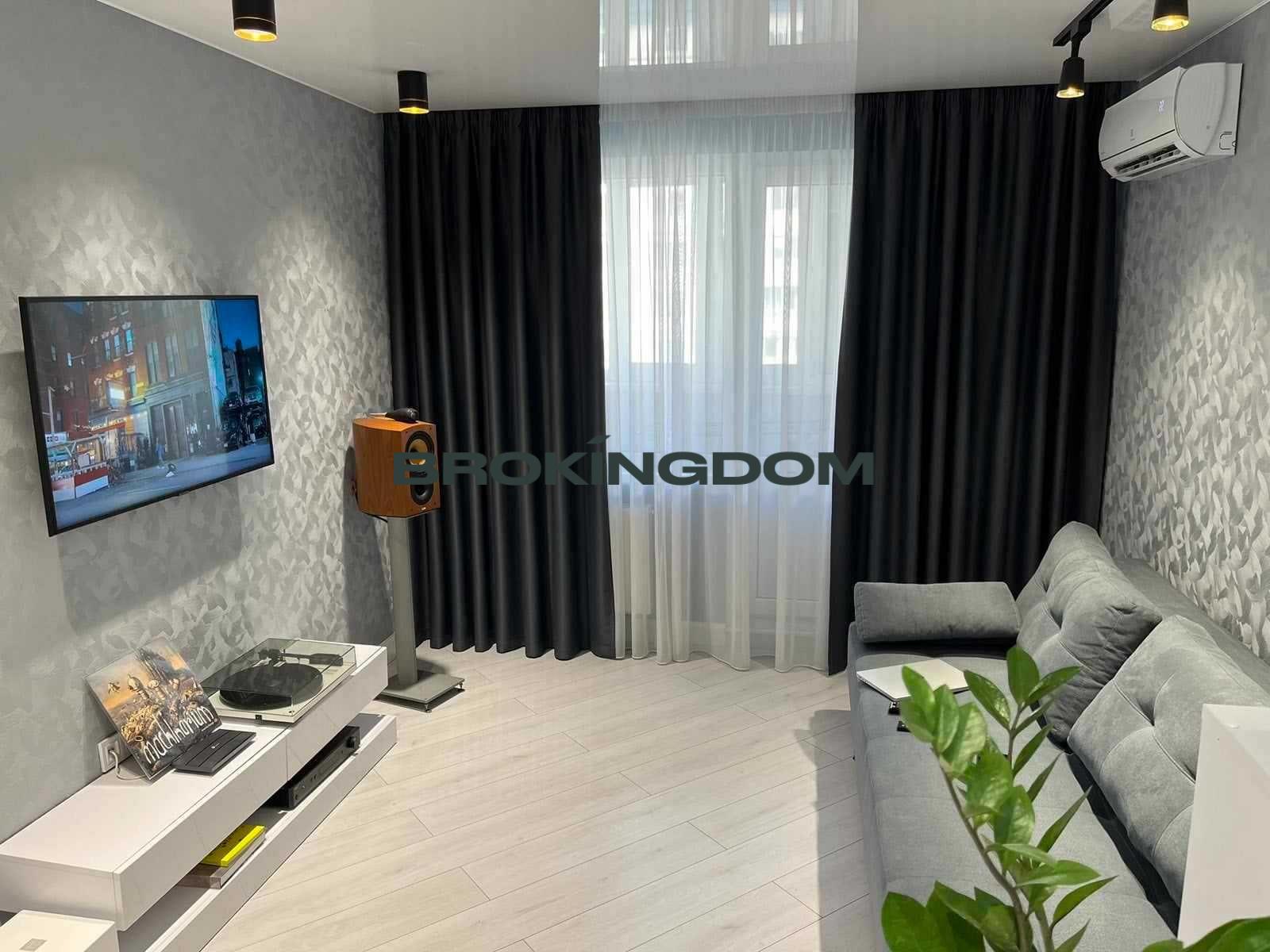 Двокімнатна квартира з сучасним ремонтом (робили для себе)! Ремонт виконаний із застосуванням високоякісних матеріалів: подвійний склопакет, ламінат, підігрів підлоги (кухня, санвузол, лоджія), підвісна стеля, оригінальне підсвічування, охоронна сигналізація, кондиціонери. Санвузол сумісний, дорога сантехніка, душевий блок, велика затишна лоджия!
