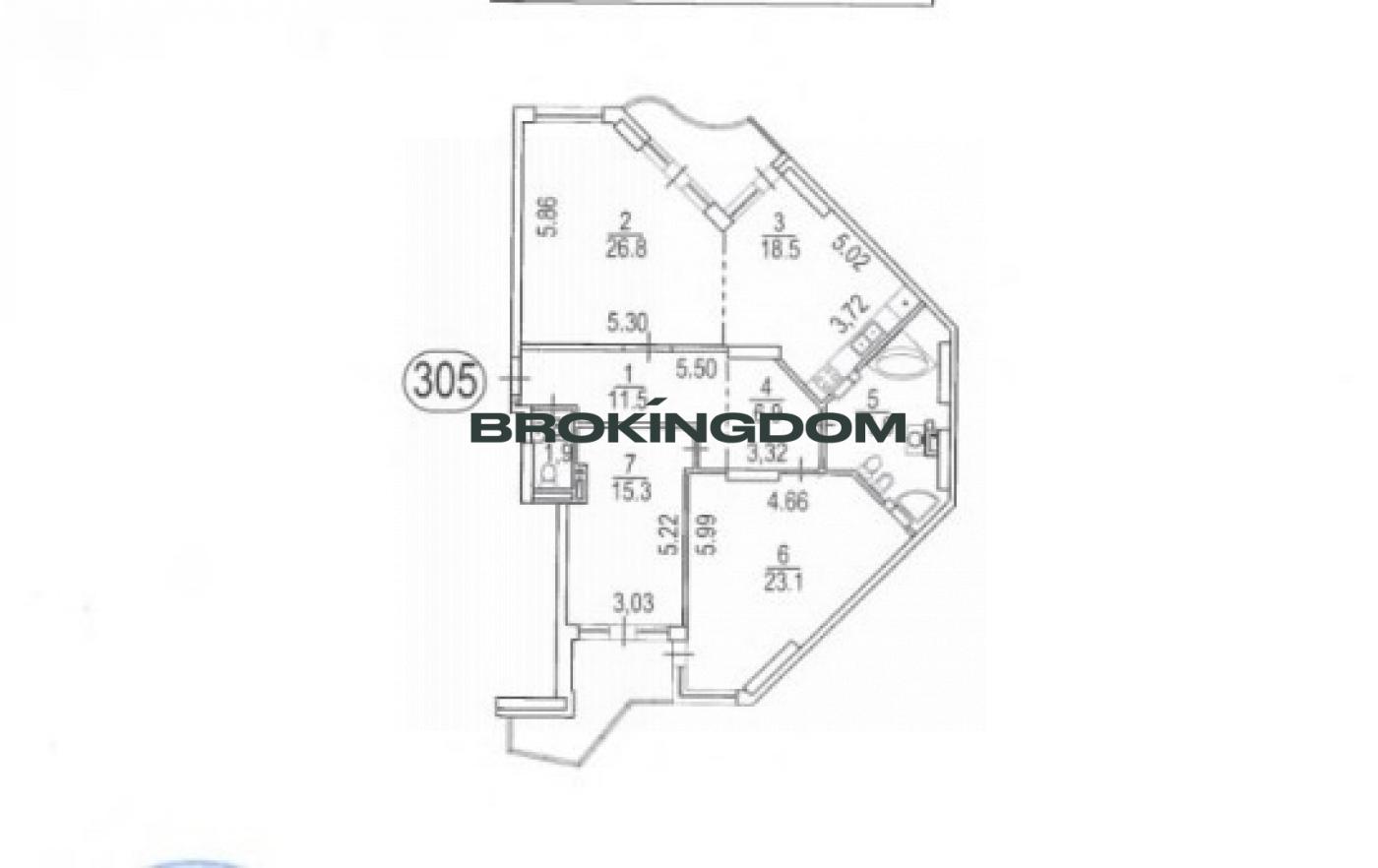 Квартира знаходиться на 5-му поверсі, має два роздільних санвузли, простору ванну та душову кабіну.