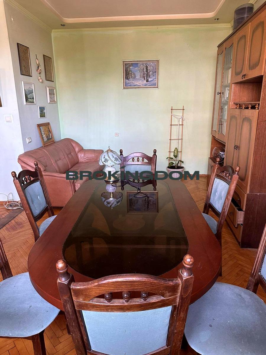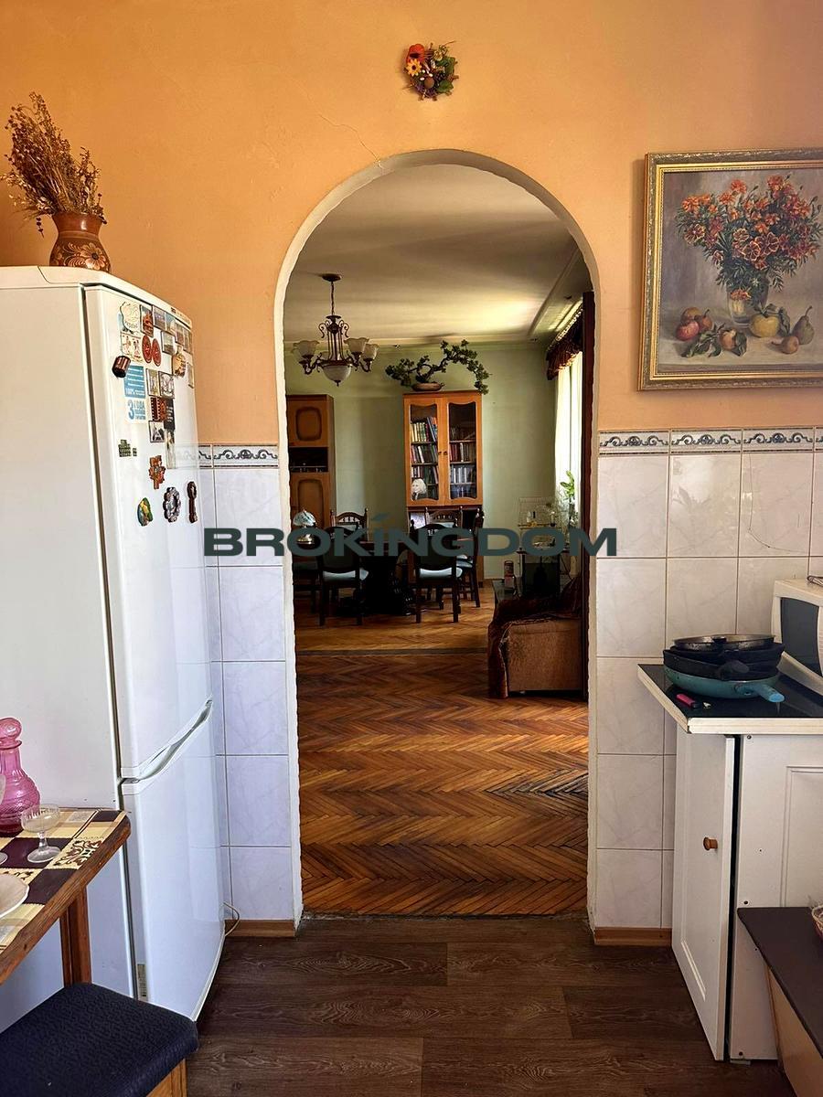 Будинок цегляний, добротна « сталінка» з ліфтом. Поверх 6/7. Кухня – вітальня, простора і світла, 2 окремі кімнати. 2 балкони засклені. Квартира в житловому стані, двустороня, високі стелі – 3м. Вікна металопластик, на підлозі паркет. Дерев’яні міжкімнатні двері. С/в суміжний, кахель, бойлер.