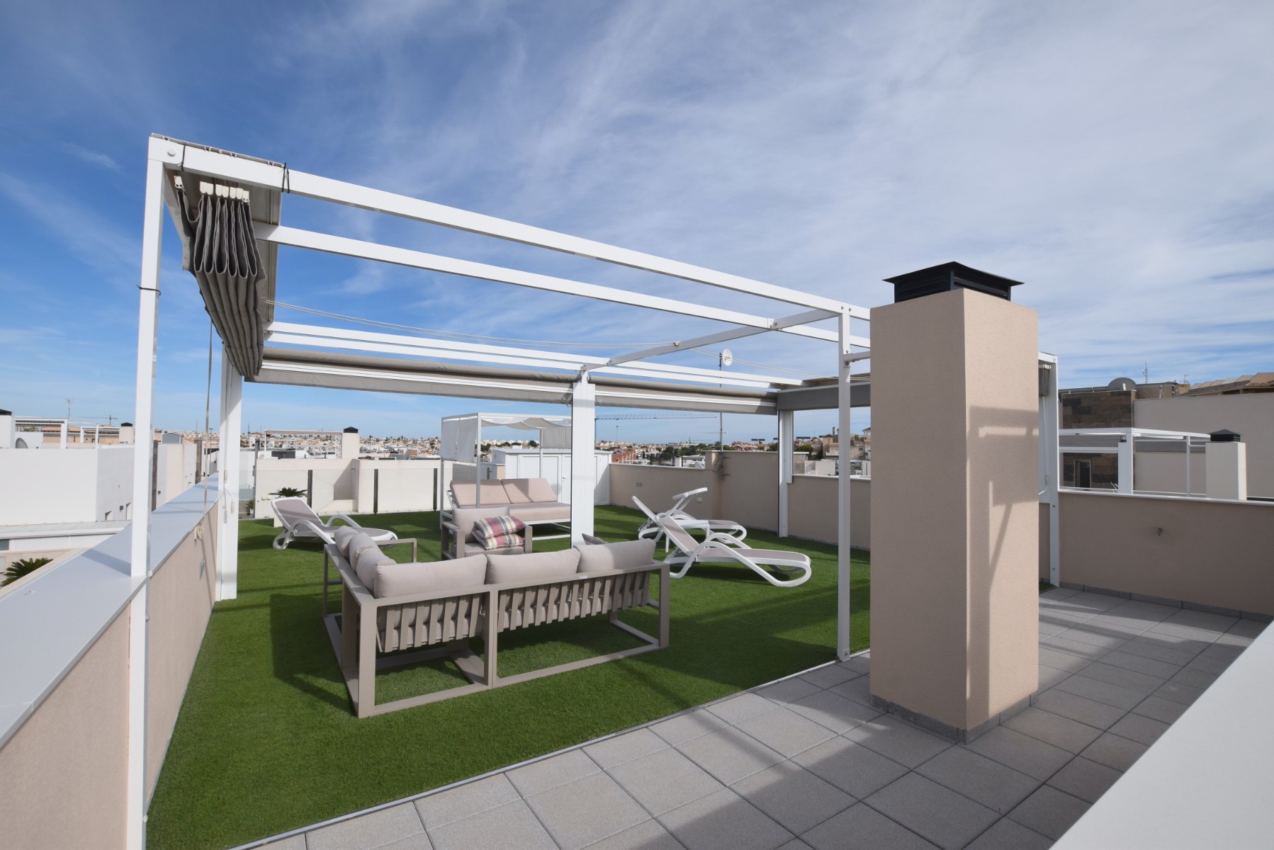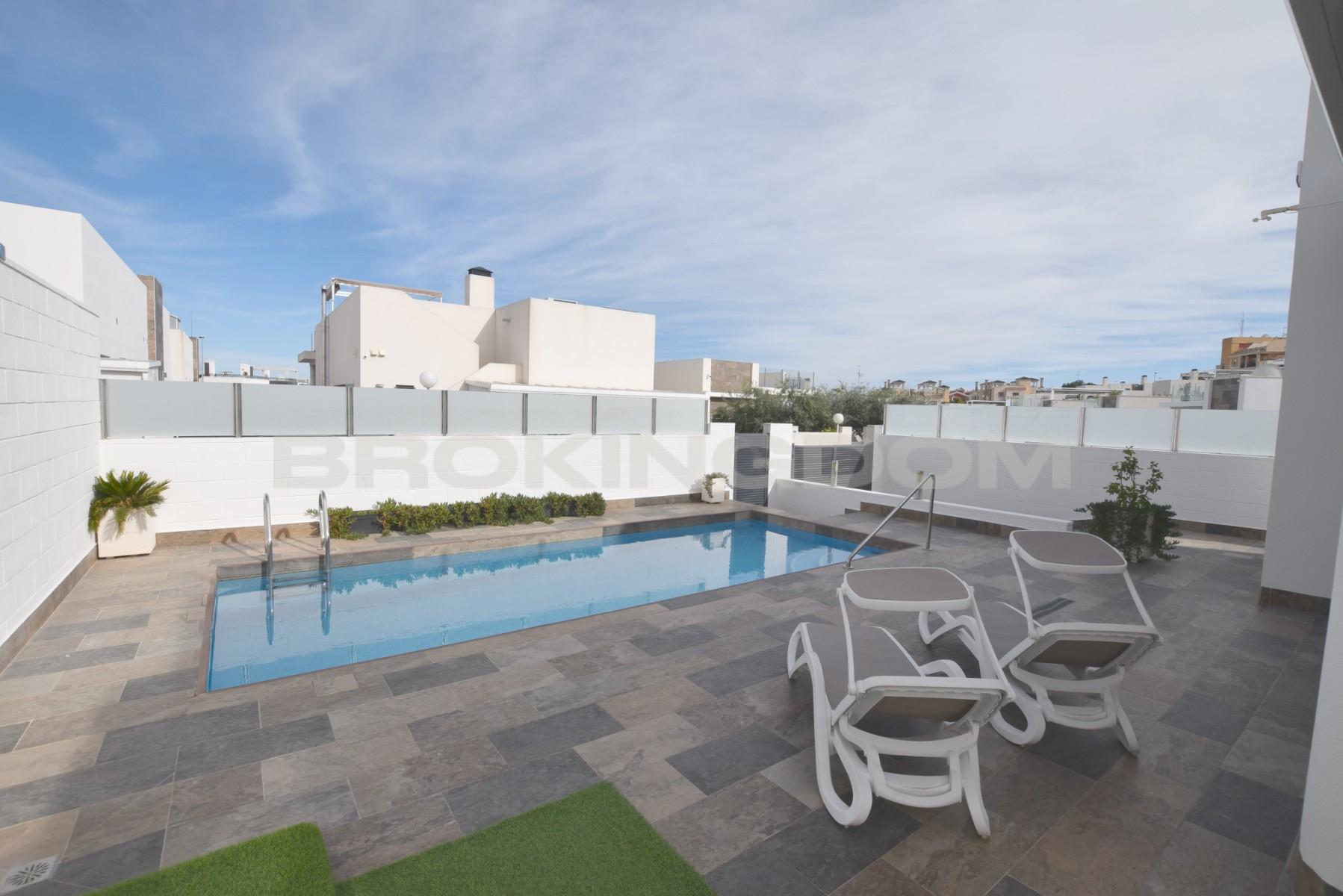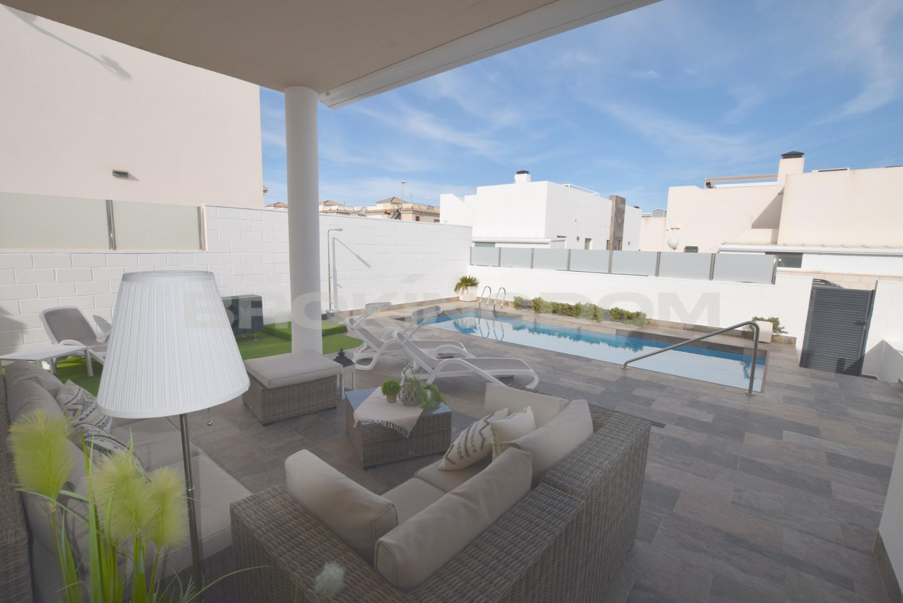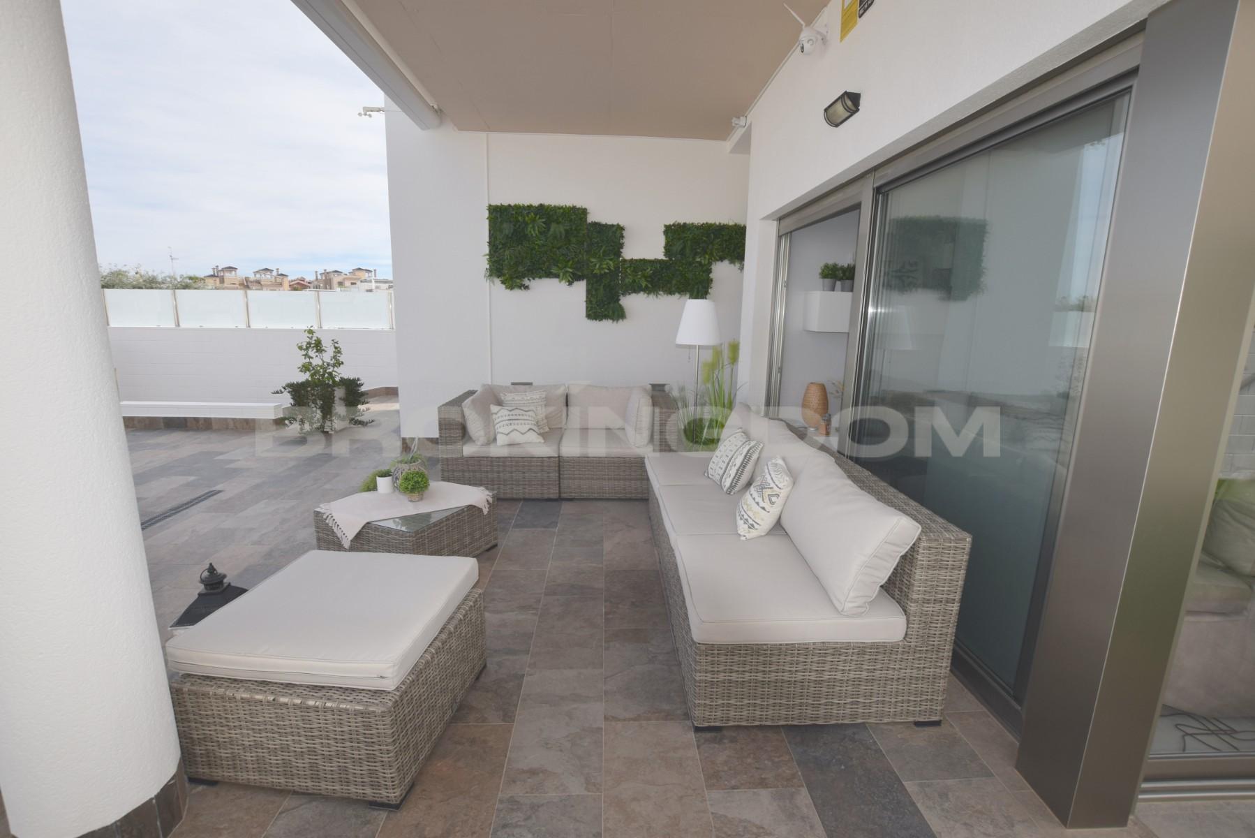 This property is built to the highest standard and includesall furniture inside and out, private heated swimming pool, hot/cold vented air conditioning, modern kitchen with fitted appliances, electric shutters throughout, all lighting and arooftop solarium complete with jacuzzi and fitted pergolas.