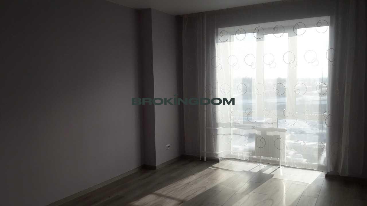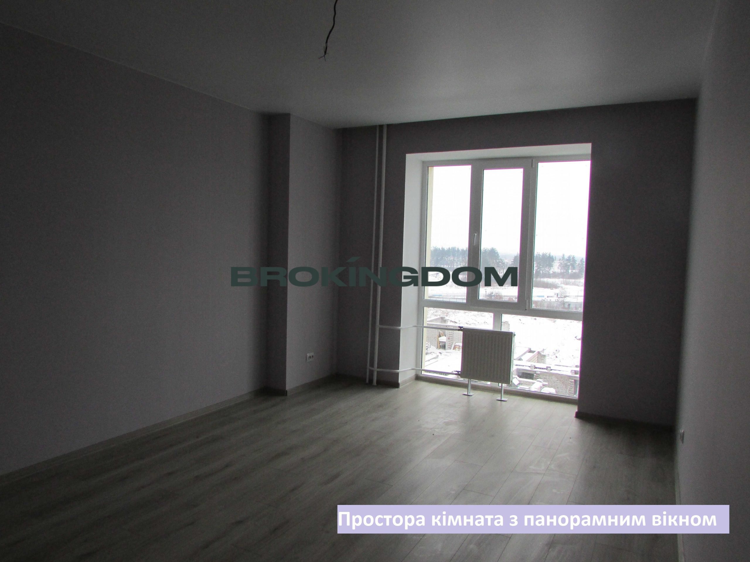 Кімната 18.5 м.кв. правильно прямокутної форми з великим панорамним вікном, світла та приємна.