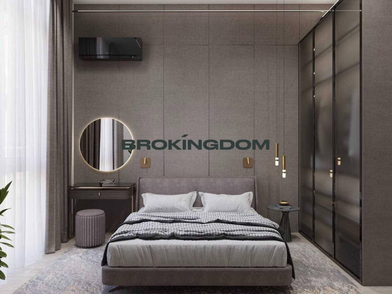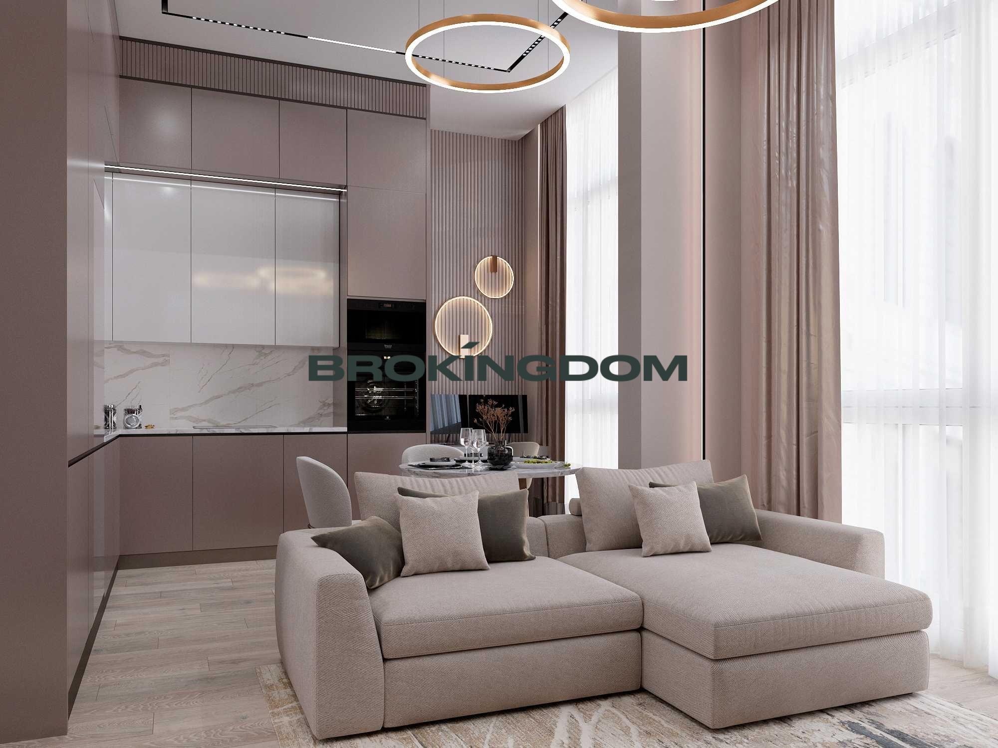 Світла 1-кімнатна 44,8 кв.м, з панорамними вікнами, високими стелями 3.6 м і видом на Променаду ( безавтомобільна, пішохідна алея з арт-об’єктами, озером, пішохідним мостиком).